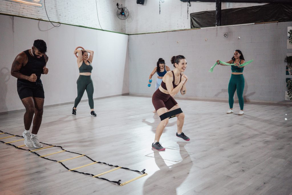 Son clases muy dinámicas sin impacto donde trabajamos y tonificamos todo el cuerpo. En esas vamos a trabajar con nuestro propio peso corporal y utilizar elementos como mancuernas, pelotas, elásticos para que nos ayude a conseguir un resultado mas rápido para que nos ayude