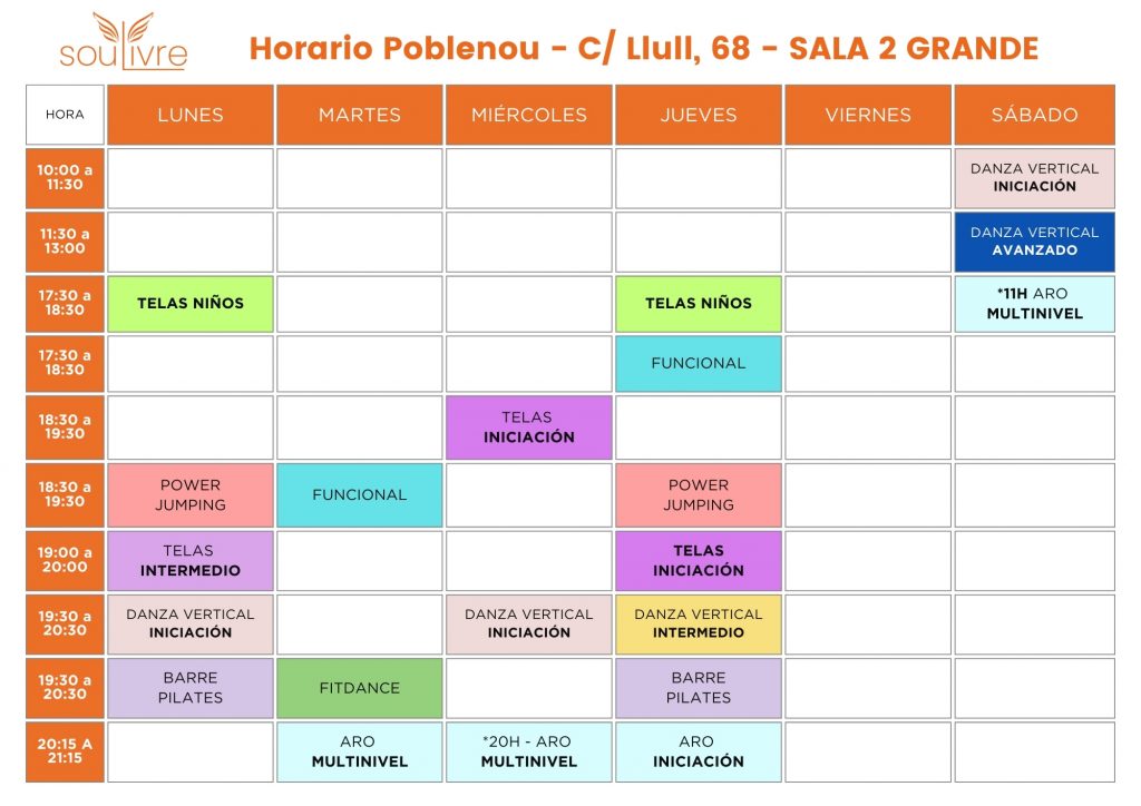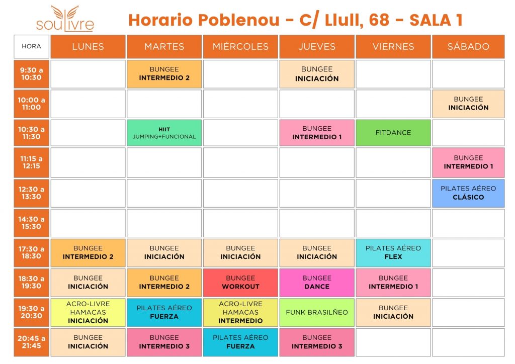 PRECIOS Precios y Clases de SouLivre Descubre nuestras tarifas mensuales y las distintas clases disponibles para mejorar tu bienestar y condición física. Precios Clases de prueba Suscripción mensual Suscripción 4 clases al mesMATRÍCULA 40€+49€ / MES Comprar Suscripción 8 clases al mesMATRÍCULA 40€+69€ / MES Comprar Suscripción 16 clases al mesMATRÍCULA 40€+99€ / MES Comprar Suscripción ilimitadaMATRÍCULA 40€+139€ / MES Comprar Pack 3 meses Pack 3 meses – 4 clases MATRÍCULA 40€ 12 clases para utilizar durante 3 meses.135€(El mes sale por 45€ antes que 49€) Comprar Pack 3 meses – 8 clases MATRÍCULA 40€ 24 clases para utilizar durante 3 meses.195€(El mes sale por 65€ antes que 69€) Comprar Pack 3 meses – 16 clases MATRÍCULA 40€ 48 clases para utilizar durante 3 meses.285€(El mes sale por 95€ antes que 99€) Comprar Bonos 4 clases(Caducidad 3 meses)60€ Comprar 8 clases(Caducidad 6 meses)110€ Comprar Clases de prueba Si te apuntas a SouLivre, te DESCONTAMOS el coste de la clase de prueba de la MATRÍCULA*No acumulable con otras ofertas Bungee Up 20€ Jumping/HIIT - 17€ Pilates/Barre - 15€ Fitdance/Funk - 15€ Pilates aéreo - 17€ Funcional - 15€ Danza vertical - 25€ Telas/AcroLivre 20€ Con las suscripciones, packs y bonos puedes apuntarte a cualquier clase. (1 crédito = 1 clase) Clases de prueba Si te apuntas a SouLivre, te DESCONTAMOS el coste de la clase de prueba en tu suscripción mensual Bungee - 20€ Jumping/HIIT - 17€ Pilates/Barre - 15€ Fitdance/Funk - 15€ Pilates aéreo - 17€ Funcional - 15€ Danza vertical - 25€ Telas/AcroLivre 20€ Precios Suscripción mensual (Suscripción válida para TODAS las clases regulares, menos Danza Vertical) PROMO – hasta 13/10Desde las 7:30 hasta las 15:30MATRÍCULA 40€+3 DÍAS X SEMANA 69€ Comprar PROMO – hasta 13/10MATRÍCULA 40€+1 DÍA X SEMANA 49€ Comprar MATRÍCULA 40€+2 DÍA X SEMANA 69€ Comprar PROMO – hasta 13/10MATRÍCULA 40€+3 DÍAS X SEMANA 89€ ANTES QUE 99€ Comprar MATRÍCULA 40€+ILIMITADA 129€ Comprar Suscripción mensual danza vertical (Suscripción válida para Danza Vertical) MATRÍCULA 40€+1 DÍA X SEMANA 69€ Comprar PROMO – hasta 13/10MATRÍCULA 40€+1 +1 DÍA X SEMANA – 89€(ANTES QUE 99€)*Incluye 1 clase de D.V. y 1 clase del resto de actividades Comprar MATRÍCULA 40€+2 +1 DÍAS X SEMANA – 109€*Incluye 2 clases de D.V. y 1 clase del resto de actividades Comprar Bonos BONO VÁLIDO PARA 4 CLASES REGULARES – 60€Caducidad 3 meses – no válido para danza vertical Comprar BONO VÁLIDO PARA 8 CLASES REGULARES – 110€Caducidad 6 meses – no válido para danza vertical Comprar BONO VÁLIDO PARA 10 CLASES DE DANZA VERTICAL – 160€Caducidad 6 meses – válido solo para danza vertical Comprar Descarga nuestra APP IOS Android